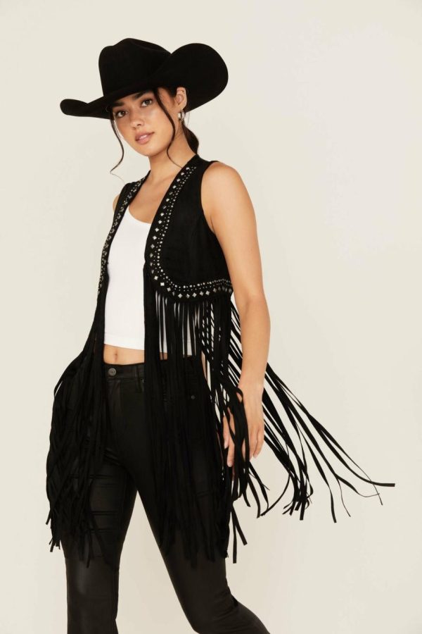 Women Idyllwind Fringe | Walnut Studded Fringe Faux Suede Vest
