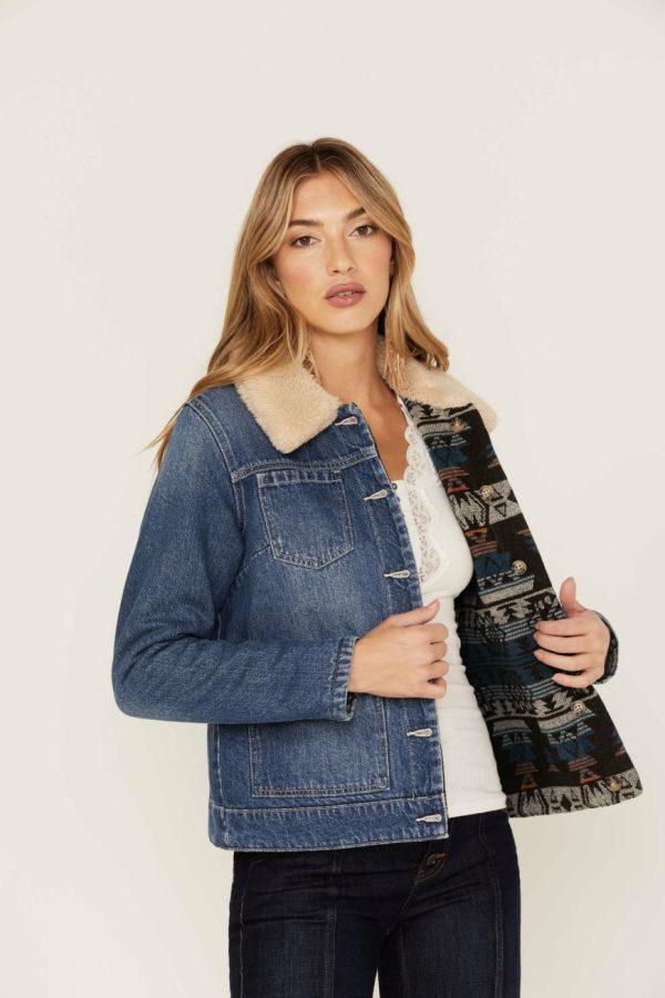 Women Idyllwind Jackets | Medium Wash Reversible Sherpa Blanket Denim Jacket