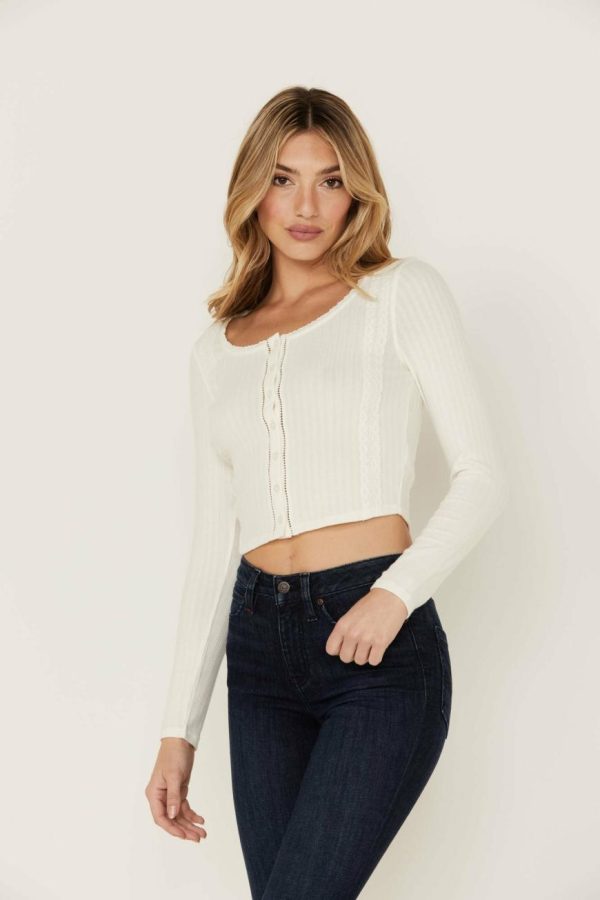 Women Idyllwind Tops | Daisy Trail Ivory Pointelle Button Front Top