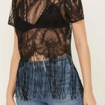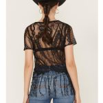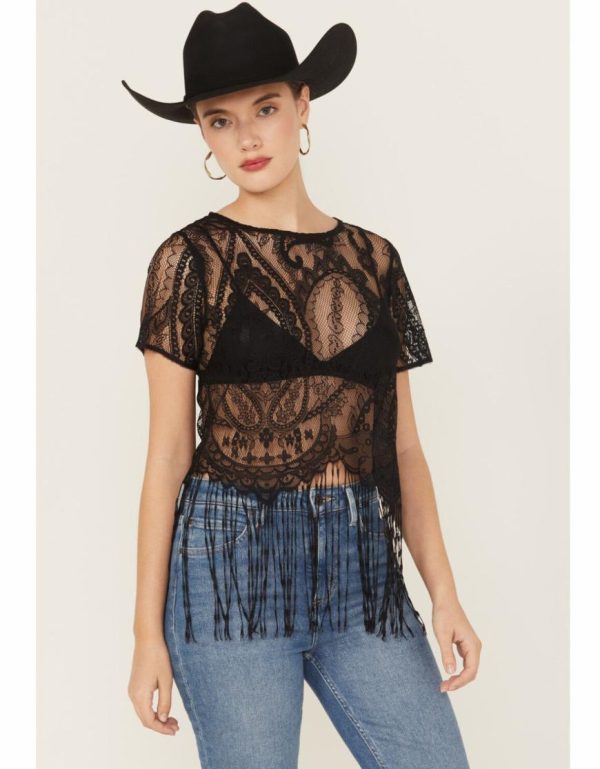 Women Idyllwind Tops | Lacey Fringe Short Sleeve Shirt