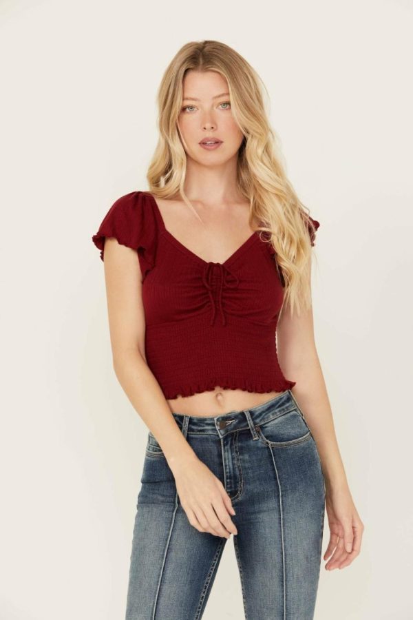 Women Idyllwind Tops | Pointe Flutter Sleeve Smocked Top